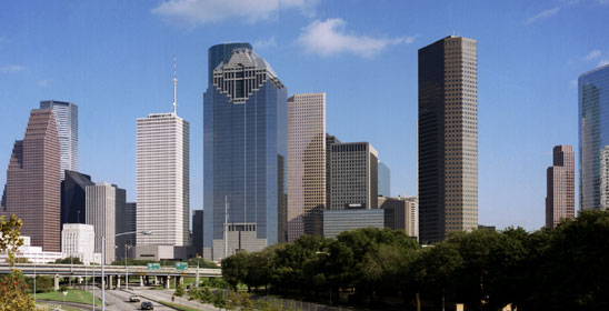 Follow signs from the airport to 1-45 South; take the McKinney Street exit (left lane) on the elevated portion of 1-45 South on the west side of downtown; the exit becomes McKinney Street; continue on McKinney Street to San Jacinto Street. One Houston Center occupies the city block bound by McKinney, Caroline, Walker and